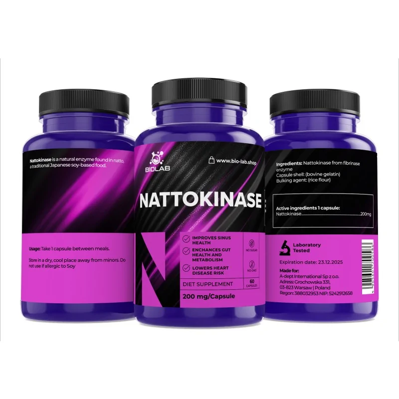 Package contains 60 capsules of Nattokinase 200mg.