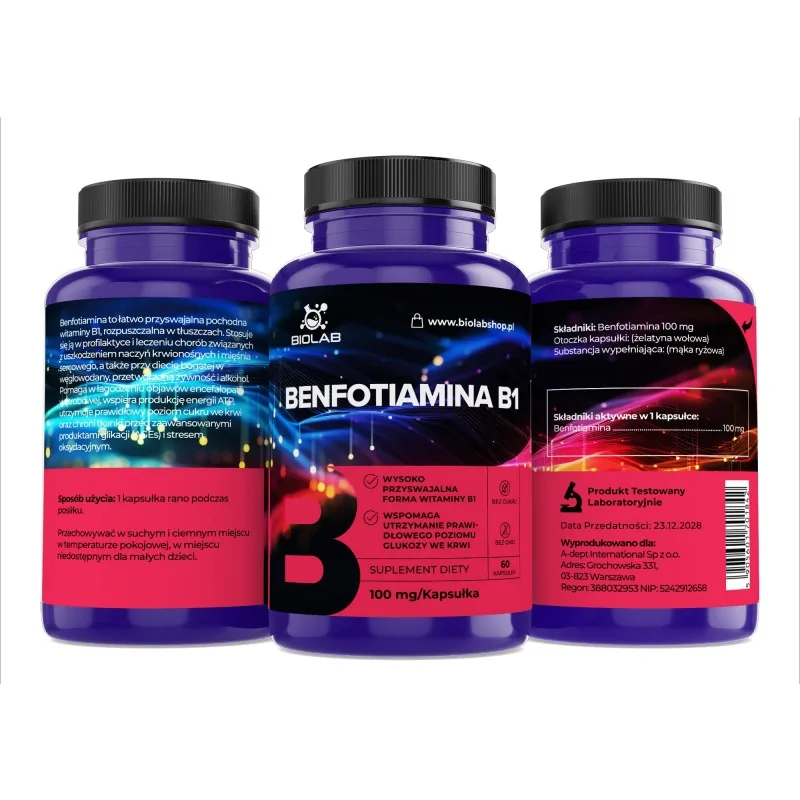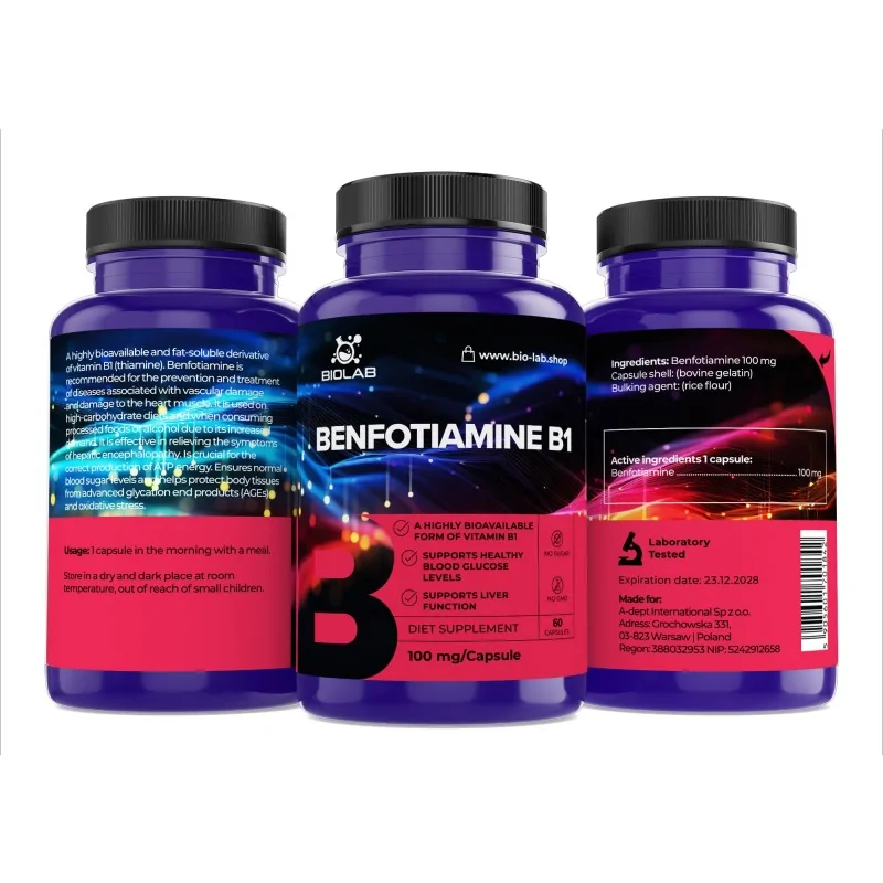 By choosing Benfotiamine 100 mg, you are investing in one of the best-researched forms of Vitamin B1. This product is for those prioritizing metabolic prevention, athletes, and anyone looking to protect their nervous system from the effects of a modern diet and oxidative stress. Thanks to its excellent lipid solubility, every dose effectively reaches the cells, offering protection and energy where they are needed most. Take care of your nerves and blood vessels with the precision offered by modern science.